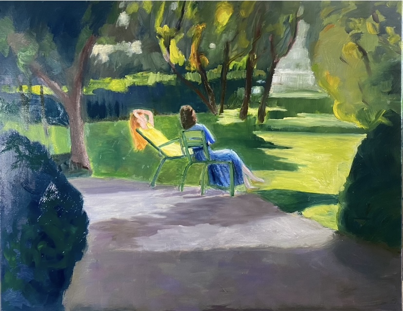 Arbres en fleurs à Paris, Huile sur toile 120 x 100 cm